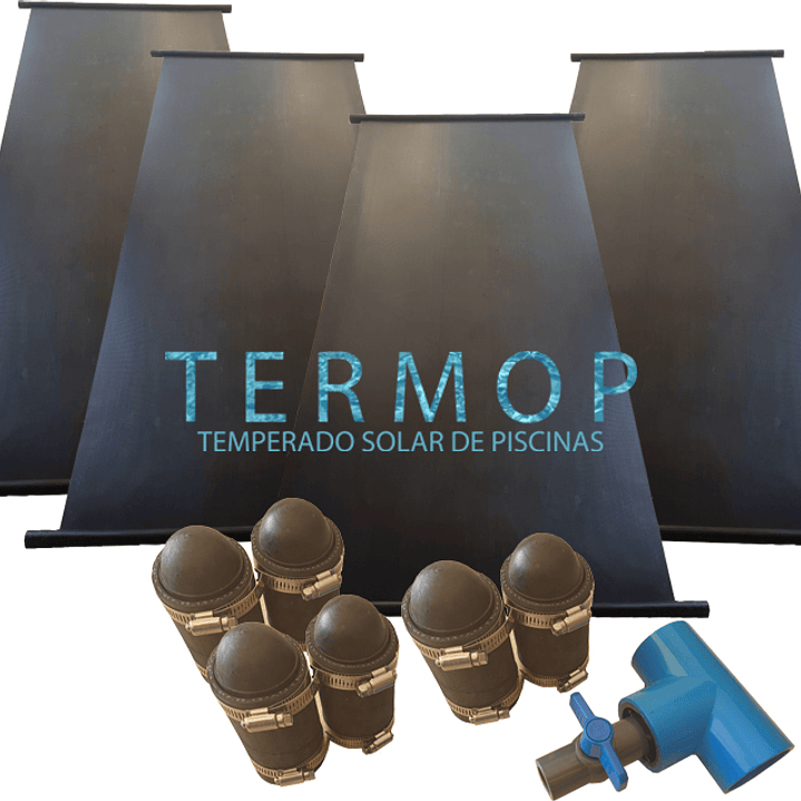 4 paneles TERMOP T10 (3.10x1.33m), sus respectivas uniones de caucho y abrazaderas de acero inoxidable